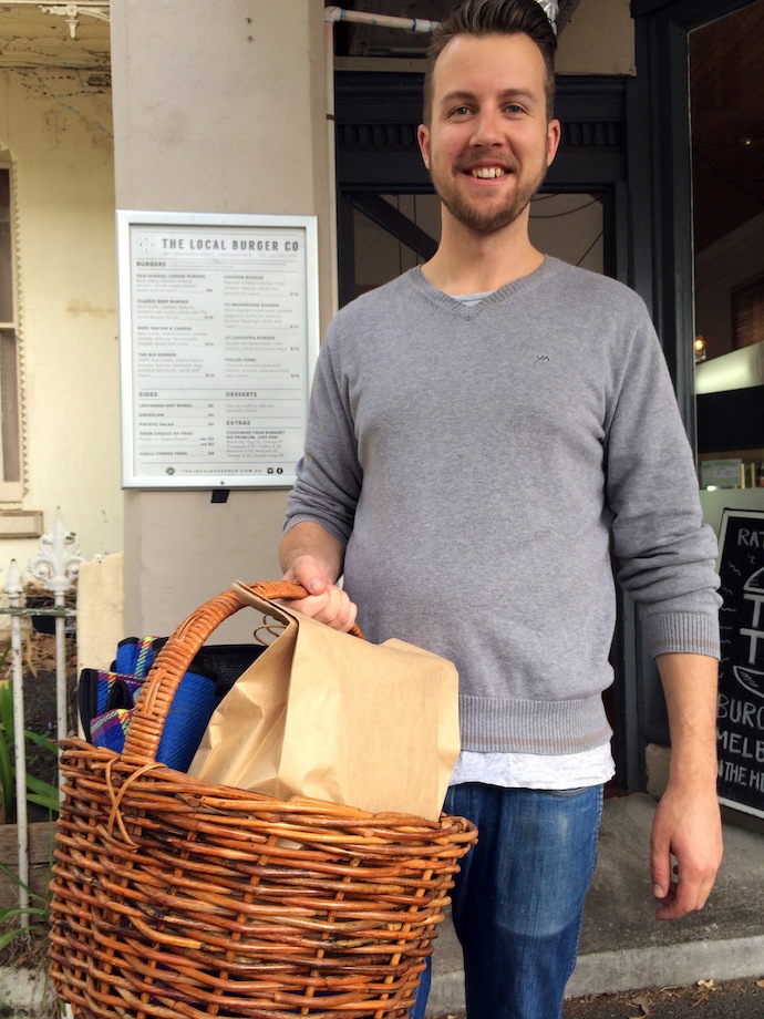 Next time you’re wandering past The Local Burger Co on Rathdowne Street and the weather is just right, ask them to pack you a picnic. You don’t need to bring a thing. They’ll pop your order into a big wicker basket along with a water-proof blanket and some lovely bamboo cutlery.* All you need to do is amble across the road to the park and crack open those famous sweet potato fries.