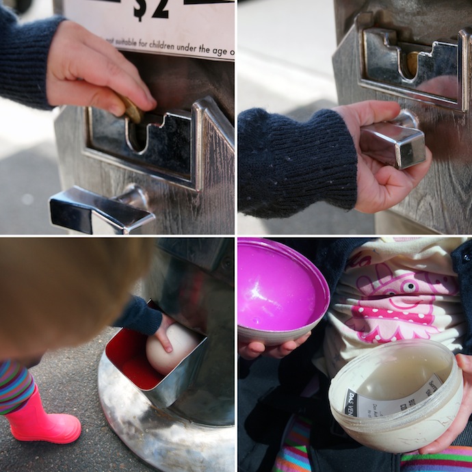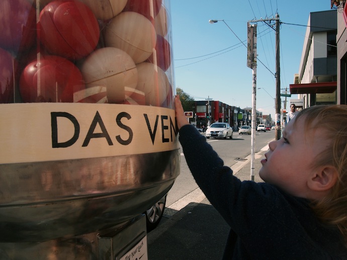 And another thing I love about this place? The “Das Vending Machine” looks like a gigantic bubble-gum machine. It costs $2 to have a go, and down will pop a big plastic ball. Madeleine loved it! Much more fun than those moving toy cars at the shopping centre.